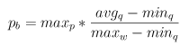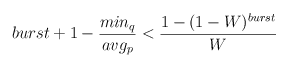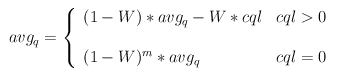 όπου cql είναι το τρέχον μέγεθος της ουράς (current queue length), m είναι ο χρόνος κατά τον οποίο η ουρά δεν είναι άδεια και W είναι μία τιμή που υπολογίζεται ως συνάρτηση των burst, min_q και avg_p έτσι ώστε να ισχύει: