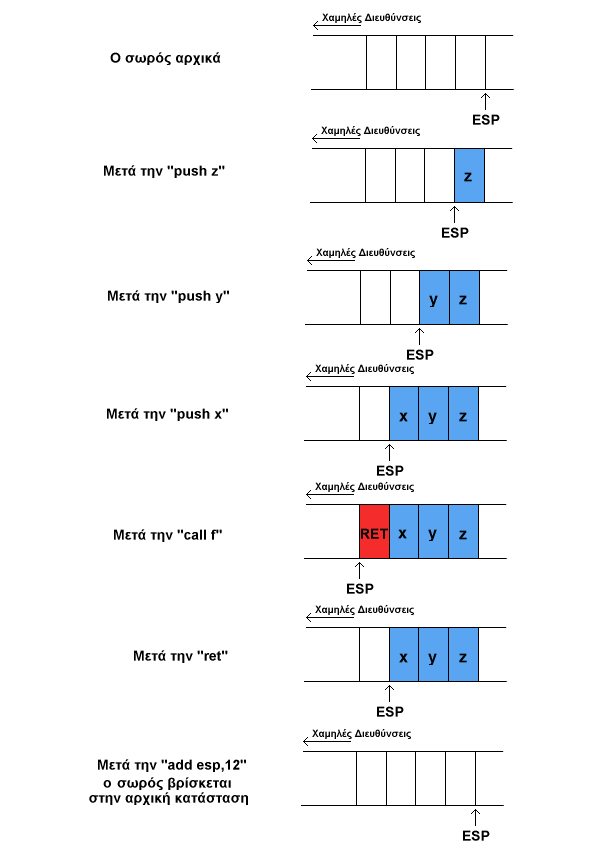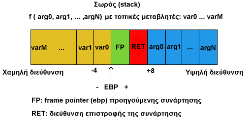 Mια συνάρτηση που χρησιμοποιεί frames τυπικά αρχίζει με την ακολουθία: []{#c_call}
