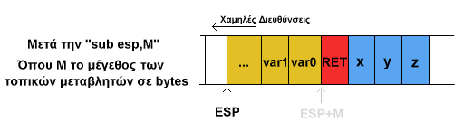 Η απάντηση για ακόμα μια φορά είναι το optimization (περιττό να σας πω ότι το πρόγραμμα έγινε compile με -Ο2). Ο compiler θέλει να κρατάει τον esp σε διευθύνσεις πολλαπλάσιες των 16 bytes! Το κόστος προσπέλασης σε μη aligned διευθύνσεις είναι τόσο σημαντικό, ώστε ο gcc εισάγει dummy εντολές για να το αποφύγει!