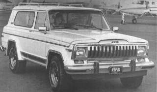 - 1984 wurden die nagelneuen Jeep Cherokee und Wagoneer vorgestellt, die die auf das Jahr 1963 datierenden Vorgänger ersetzten. Schmaler, kürzer und glatte 400 kg leichter, waren die neuen Modelle schon mit dem 2,5-Liter-Motor ausreichend motorisiert. Auf Wunsch war ein 2,8-Liter-V6 von GM erhältlich. Die neuen Fahrzeuge hatten ein modernes, richtungsweisendes Konzept. Statt, wie bei Geländewagen üblich, mit Starrahmen-Bauweise, hatten (und haben!) der Cherokee und sein viertüriger Bruder eine Uni-Frame genannte Kombination aus selbsttragender Karosserie und einem leichten, mit dem Unterboden verschweißten Verstärkungsrahmen, um die nötige Verwindungssteifigkeit zu garantieren. Verschiedene Automatik- und Schaltgetriebe standen zur Auswahl, ebenso wie permanenter oder zuschaltbarer Allradantrieb.