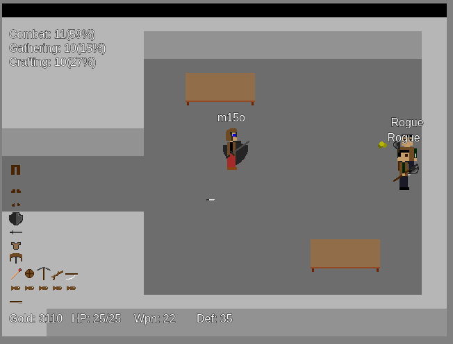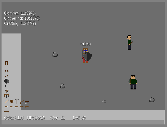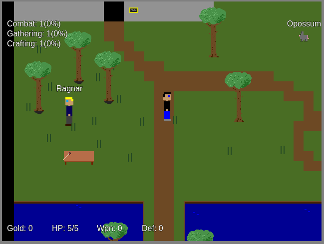 In terms of skills, there are currently three: Combat, Gathering and Crafting. Combat gives you health, make you hit harder and reduce damage inflicted by others. Gathering makes you more likely to collect items like wood, fish and ore. Crafting increase your chance of creating a fire, armor and weapon. At the moment, all skills are capped at 40.