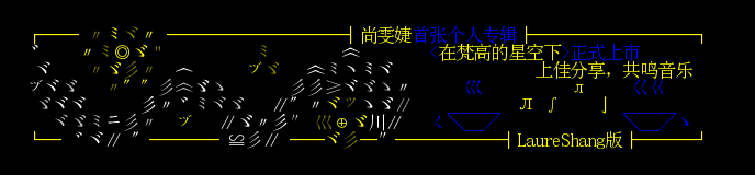 Remember just now I said that you need to use the "hardest lines" to draw "Starry Night"? In fact, this work is reminiscent of wumi's lines, with extensive use of complex symbols, creating an archaic effect. afra2005 also likes to use a lot of special symbols. In this work, it has a miraculous effect: although it is a bit messy when you look closely, the overall effect is very vivid and full, because the special characters support the entire picture, giving people Visual impact. The same principle applies to color blocks: using large blocks of color and thick lines to depict the entire picture can resemble Van Gogh's original work and express its vitality.