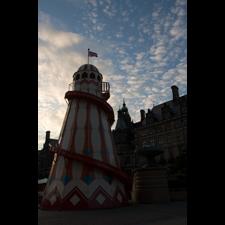 Helter-skelter at the Peace Gardens, Sheffield, with the Town Hall in the background.