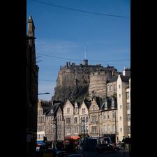The Scott Monument at bottom right, the green dome of the Bank of Scotland building on the right.