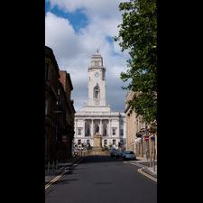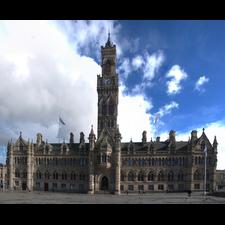 Composite picture of <s>the Palazzo Vecchio, Florence</s> the northern elevation of Bradford Town Hall.
