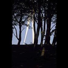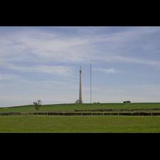 Emley Moor transmitter and temporary mast from Cross Lane.