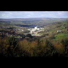 Fox' steel works, Underbank reservoir and Holme Moss transmitter on the horizon. Woodhead Pass at left.