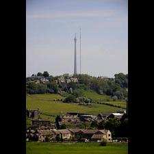 Emley Moor transmitter and temporary mast from Drinker Lane.