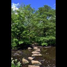 A train passing the millpond at Abbeydale Industrial Hamlet, Sheffield.