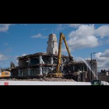 Work continues on christmas day evening demolishing the Woodseats Road, Sheffield bridge over the main line to London.