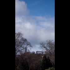 Nelson's Monument behind the tree, National Monument of Scotland to the right.