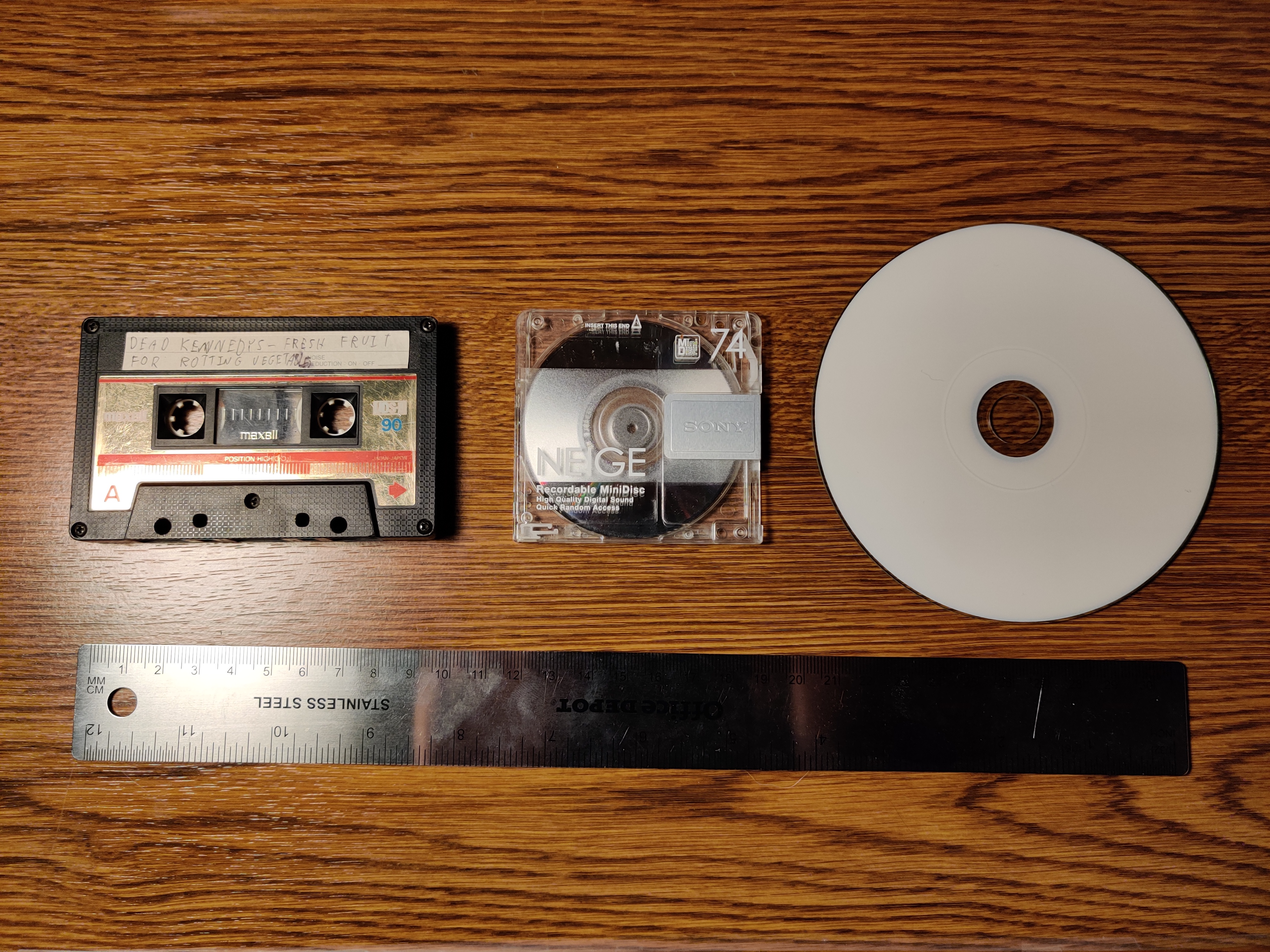 I decided to buy a minidisc recorder/player because I was emailing with solderpunk about my post about tapesᵃ and he mentioned minidiscs and reading their post on themᵇ made me really interested in them. I also just recently got rid of my car with a tape deck and then my walkman broke (as they have a propensity to do), so now the only tape player I have is my not-portable deck. Not wanting to use my phone (I'm trying to minimize what I use my phone for, not maximise it), I looked at minidiscs because portable tape players are just so shitty and I'm tired of trying to fix them (with a ~50% success rate) then having to throw it out and buy a new oneᶜ.