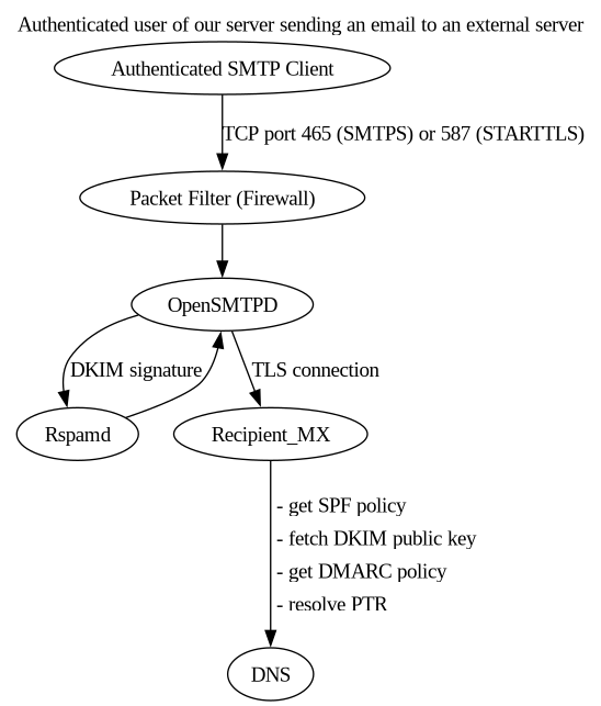 - opensmtpd 587/tcp (submission): used to send emails to external servers, supports STARTTLS