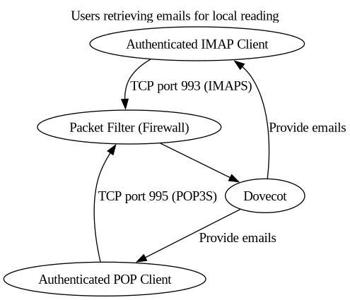 A VPN should be deployed to allow users to reach Dovecot services (IMAP, POP) and other services if any.