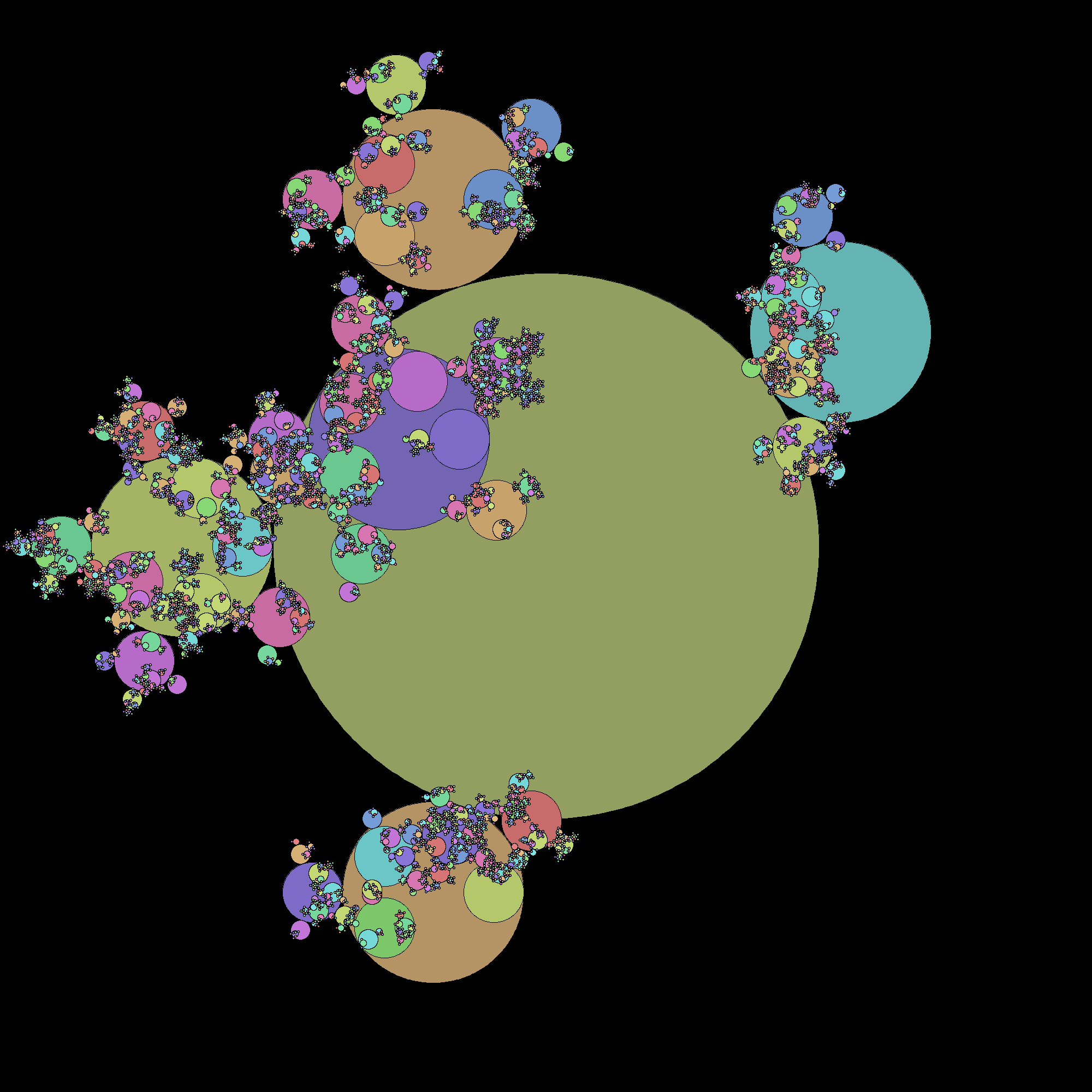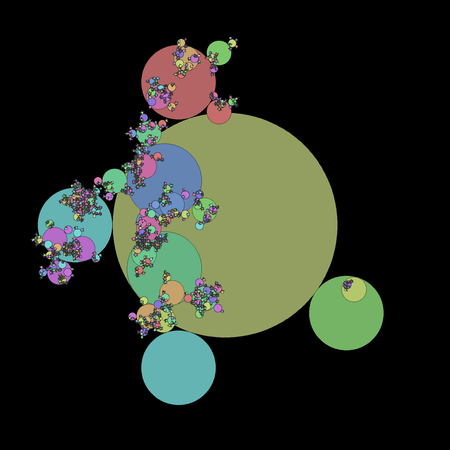 Si la última vez Pi Mondrian[1] era un programa que "plagiaba" a Piet Mondrian[2] usando como fuente exclusivamente el número pi, esta vez el programa bubbles[3], otro script en python, usa cualquier expansión numérica para crear con su propio estilo.