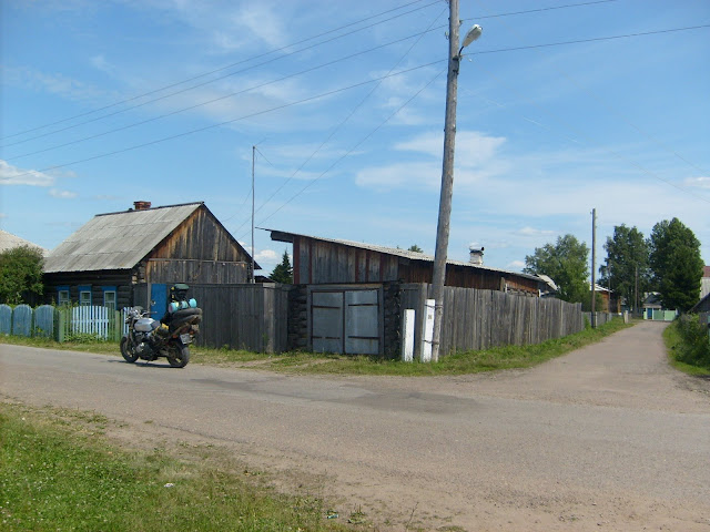 Но все съезды были очень мокрыми и полными размытостей и луж, что грозило мне проблемами и падениями и никак не ночлегом. И я ехал всё дальше и дальше. Увидев вывеску "ночлег", повернул в деревушку и зарулил на какую-то площадку. Там меня встретила довольно хорошо подвыпившая компания местной молодёжи человек эдак в 15. Время, к слову, было уже за полночь. Заглушили мне двигатель и начали "разговоры говорить". В общем, я взял инициативу на себя и повыспрашивал где мне и как переночевать, пожелал всем удачи и благополучно покинул сию деревню. В соседней же меня приютили в автобусной мастерской-стоянке. И там я в спальнике на столе и переночевал. За что им спасибо. Раненько, до приезда начальства и выехал.