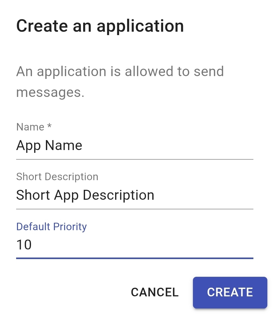 Once the APP is created a token will be available for it. This token is a unique identifier used to authenticate and authorize requests to send messages to a specific application within the Gotify server. Copy this token as it's needed to send notifications. In the commands below the token is <apptoken>.