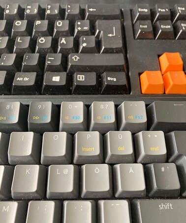 Someone on sdf's com asked about how we German deal with umlauts keyboard-wise. And because a picture is worth a thousand words, I quickly captured my keyboards in front of me. After taking the photo, I realized that some dust ha accumulated on the keyboards again. Hence...
