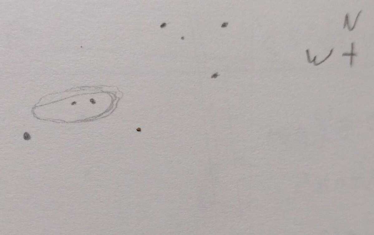 Found just above the middle of the back of Leonis. AV was not necessary for detection. A bright core can be seen. AV reveals up to three more bright spots forming almost a straight line that runs across the oval shape.
