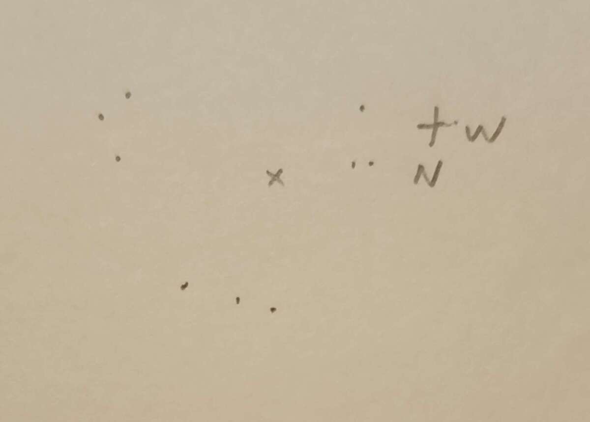 “M1 was very hard to see. I could make out what looked like a star whose light was diffused by a dark ‘splotch’. With other tiny ‘splotches’ surrounding it.”