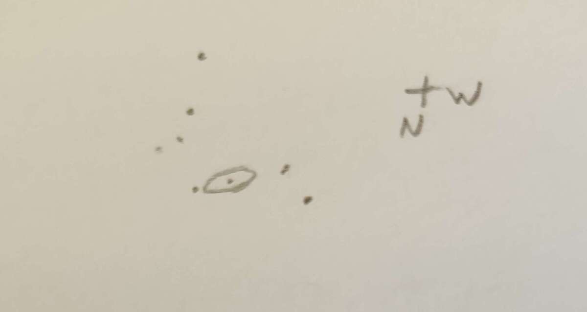 Took some time to see. Had to let my eyes relax. Finally, with prolonged AV I got a faint impression. Mostly circular, but might be slightly elongated NE to SW.