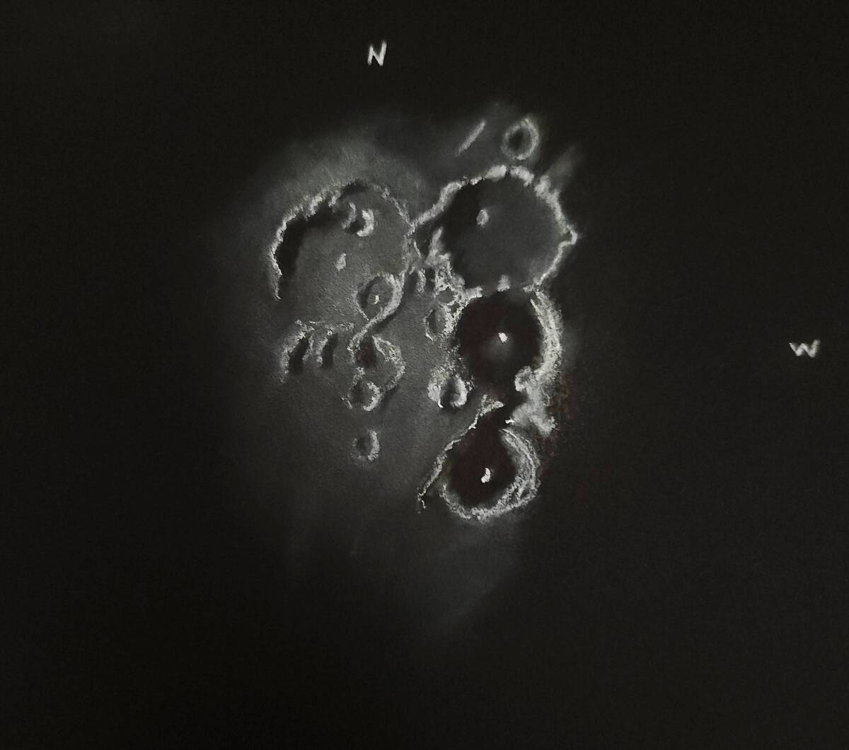 I set out tonight with a plan to sketch the Davy crater. But once I got my scope focused on the moon, ready to navigate to Davy, I was struck with how interesting the craters in my FoV were and decided to sketch those instead.