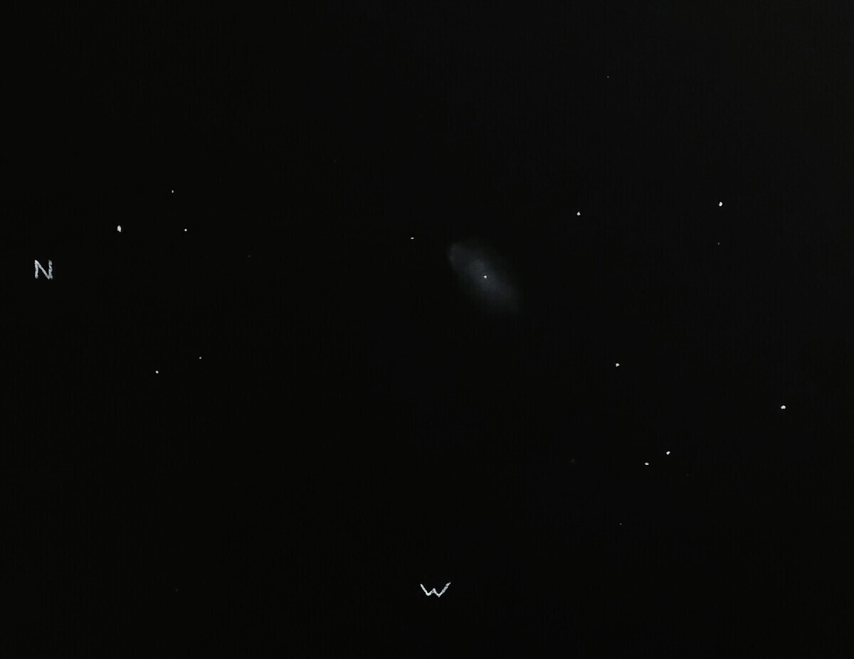 Marking this down as a favorite! Easily found and seen. Very edge-on and long with a noticeable bulge near the core. AV is giving me glimpses of a dark line running through the center from end-to-end. Reminds me of a fainter and larger version of M 104.