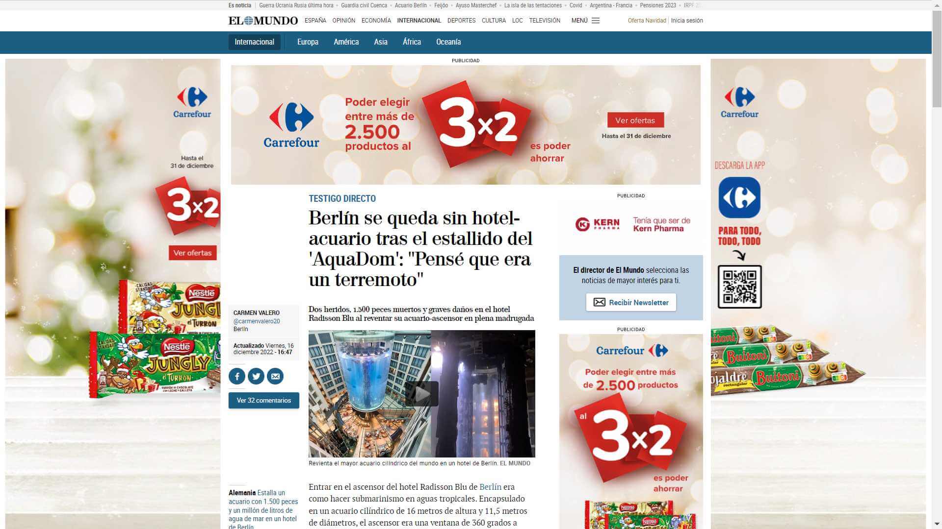 Lo primero de lo que nos percatamos es de que la mayor parte de la superficie de pantalla está ocupada por publicidad, además incluye muchas fotos y puede incluir hasta videos y audios intrusivos. Todos esos recursos proceden de servidores diferentes al servidor en el que está alojado el artículo que pretendemos leer, suponen conexiones adicionales, una mayor cantidad de datos a transmitir y posiblemente unos miles de kilometros más que deben recorrer esos datos. Mayor consumo energético en definitiva. Pero además, esos anuncios no son neutros, en mi caso he recibido anuncios de un supermercado pero otros usuarios recibirán anuncios de viviendas, de coches o de vete a saber qué. El asunto es que nuestra visita no es neutra, depende del fingerprint que nos han extraído previamente y de nuestros hábitos de navegación. Y a eso hay que añadir que detrás de cada visita posiblemente haya un proceso de "publicidad programática", una subasta automatizada de publicidad en la que las empresas pujan de forma automatizada durante unos milisegundos para que tú y sólo tú veas su puñetero anuncio. Todo esto no parece razonable, es prácticamente una pesadilla. Algunos sabemos cómo limitar todo esto a través del uso de bloqueadores como Ublock-Origin e incluso bloqueando por defecto el javascript, pero el usuario medio no se meterse en esos líos y acaba tragándose lo que sea.