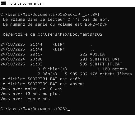 IF EXIST script01.BAT ECHO Le fichier SCRIPT01.BAT est créé