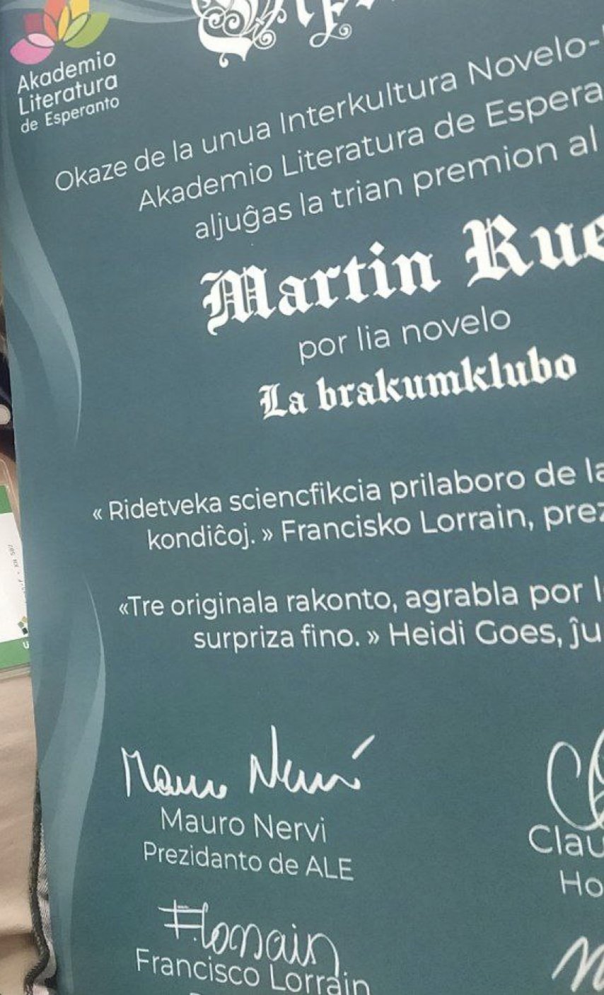 Awesome! My Esperanto story won third prize. Super happy with that. I even get a cool diploma for it: https://pbs.twimg.com/media/FZvjZWVWIAApWys?format=jpg&name=large