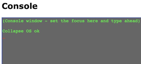Existe un emulador JS Collapse OS de Michael Schierl que permite ejecutar Collapse OS desde el navegador.