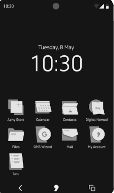 También conocido como AphyOS, es un nuevo sistema operativo móvil que da prioridad a la privacidad y la seguridad. Está basado en Android Open Source Project (AOSP) y no incluye el paquete Google Mobile Service (GMS), lo que significa que no hay aplicaciones de Google como Google Play Store.