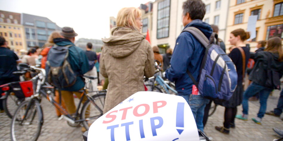 Ein Netzwerk aus Verbraucher-, Sozial-, Juristen- und Umweltverbänden macht gegen die Freihandelsabkommen TTIP, CETA, TiSA mobil. In Hamburg ist auch der DGB dabei.