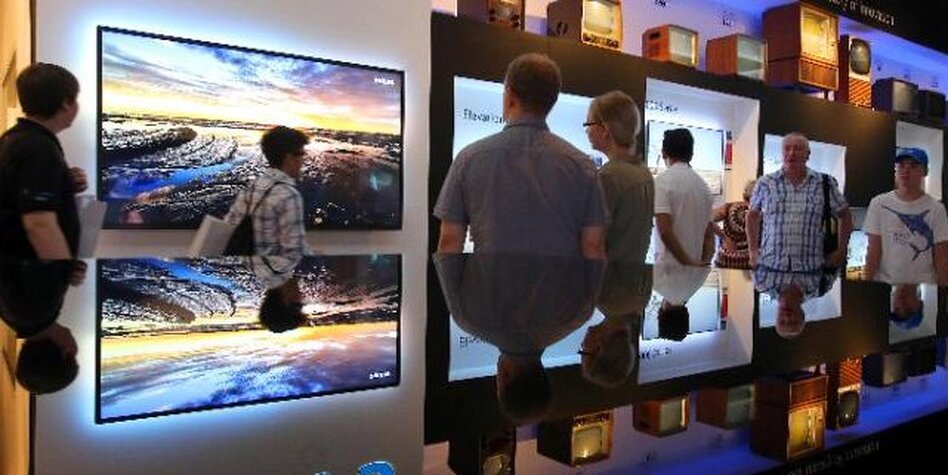 Auf der IFA geht es ums Verkaufen. 1924 eröffnete die erste Große Deutsche Funkausstellung Berlin mit 180.000 Gästen. Dieses Jahr werden an den sechs Messetagen bis Mittwoch rund doppelt so viele Besucher erwartet. Besonders beliebt sind die Errungenschaften der Fernsehgeräte: Die Zuschauer stapeln sich vor einer 3-D-Videowand. Mit Plastikbrillen starren sie auf die Werbefilmchen eines Elektronikkonzerns. Die große Attraktion ist jedoch die nächste Bildschirm-Generation: Ultra- statt nur High Definition (HD). Viermal so viele Bildpunkte sollen eine noch höhere Auflösung bringen. Allerdings funktioniert die Technik bisher nur für Kinofilme, denn die Fernsehsender produzieren höchstens in Standard-HD.