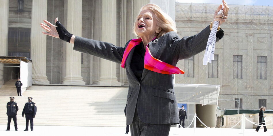 Als Edie Windsors Ehefrau starb, musste sie Steuern zahlen, als hätte sie eine Fremde beerbt. Nun klagt sie vor dem Obersten US-Gericht und hat gute Chancen.