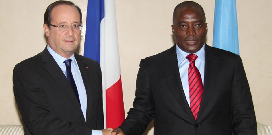 BERLIN taz | Ein kühler Händedruck, ein paar kurze Worte: gerade etwa zwei Sekunden dauert die Begrüßung von Kongos Präsident Joseph Kabila durch seinen französischen Amtskollegen Francois Hollande, als dieser am Samstag zum Beginn des intrenationalen Frankophonie-Gipfels auf dem breiten roten Teppich im „Volkspalast“ von Kinshasa auf seinen Gastgeber zugeht.