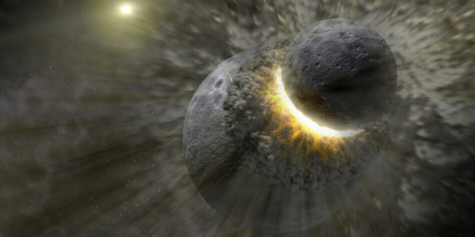 Am Anfang war Nebel und Staub: Diese evolutionäre Wahrheit kann man sich im Landesmuseum auf vielfältige Weise vergegenwärtigen. Die Massenanziehungskraft erscheint dabei als Motor der Himmelsbewegungen. Körnchen für Körnchen ballt sich zusammen, bis die Galaxie im besten Wortsinn gebacken ist. Wobei es ständig zu Zusammenstößen kommt ...