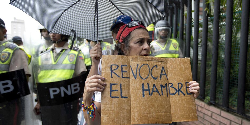 Tausende fordern eine rasche Abstimmung über Präsident Maduro. Die Nahrungsmittelknappheit bleibt bestehen. Im Zoo von Caracas schlachteten Unbekannte ein Pferd.