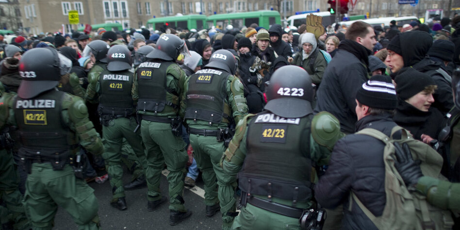 Dresden taz | „Gespenstisch“ mute das Verfahren an und wirke „wie aus einer anderen Zeit“, erklärte Verteidiger Ulrich von Klinggräff zu Prozessbeginn. Es ist die dritte Verhandlung gegen Tim H., Mitarbeiter der Bundesgeschäftsstelle der Linken in Berlin, vor einem sächsischen Gericht, die am Mittwoch begann. Und es ist die letzte im Zusammenhang mit den Krawallen vom 19. Februar 2011, als Nazis zum Gedenken an die Zerstörung Dresdens letztmals eine größere Anhängerschaft mobilisieren konnten. Sowohl friedliche Bürger als auch militante Linke versuchten damals, den Aufmarsch zu verhindern.