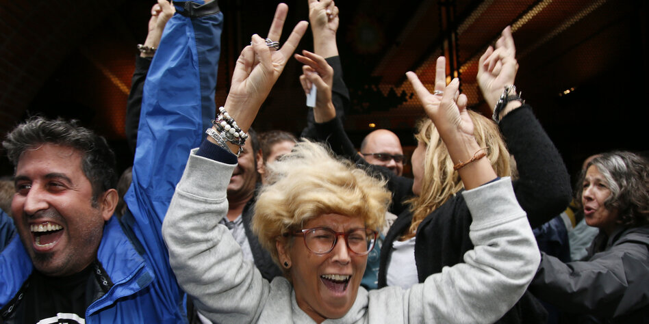 Barcelona taz | Überall in Katalonien verfolgten die Menschen am Sonntagabend die Auszählung der Stimmen über Großbildschirme, die auf vielen Plätzen aufgestellt waren. In der katalanischen Hauptstadt Barcelona fand die größte Wahlfeier statt – Tausende füllten die Plaça de Catalunya. „Hallo Republik“, „Hallo neuer Staat“ stand auf Transparenten.