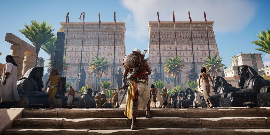 „Assassin's Creed Origins“ spielt im alten Ägypten. Der neue Erkundungsmodus lässt die Grenze zwischen Spiel und Lernsoftware verwischen.