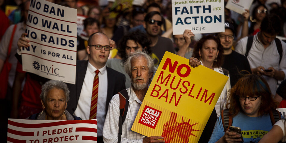 Das Einreiseverbot für Muslime war die Umsetzung eines Versprechens, das Trump vielfach in seinem Wahlkampf gemacht hatte. Es war – und ist – so offensichtlich rassistisch und so deutlich gegen die Angehörigen einer bestimmten Religion gerichtet, dass sich noch am selben Wochenende im Januar 2017 die Flughäfen der USA mit DemonstrantInnen füllten, und dass Gerichte die erste und die beiden folgenden Versionen des Trumpschen Dekrets immer wieder zu Fall brachten.