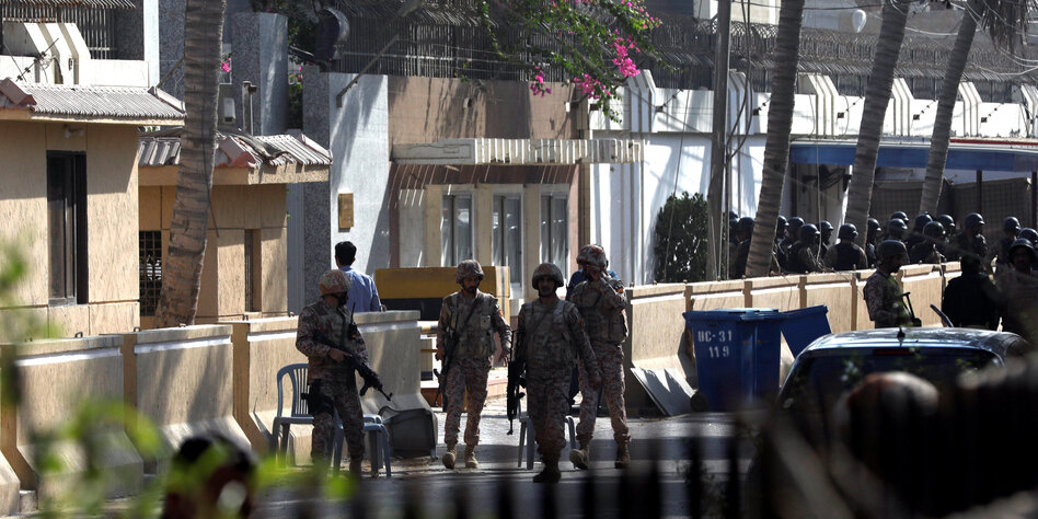 Neu-Delhi taz | Bei einem Selbstmordanschlag auf das chinesische Konsulat in der pakistanischen Hafenstadt Karatschi sind am Freitag fünf Menschen ums Leben gekommen. Am Freitagmorgen hatten drei Bewaffnete der Separatistengruppe „Befreiungsarmee Belutschistans“ (BLA) die diplomatische Vertretung gestürmt. In dem folgenden Feuergefecht mit der pakistanischen Polizei wurden alle drei Angreifer sowie zwei Polizisten getötet. Ein Wachmann des Konsulats wurde verletzt.
