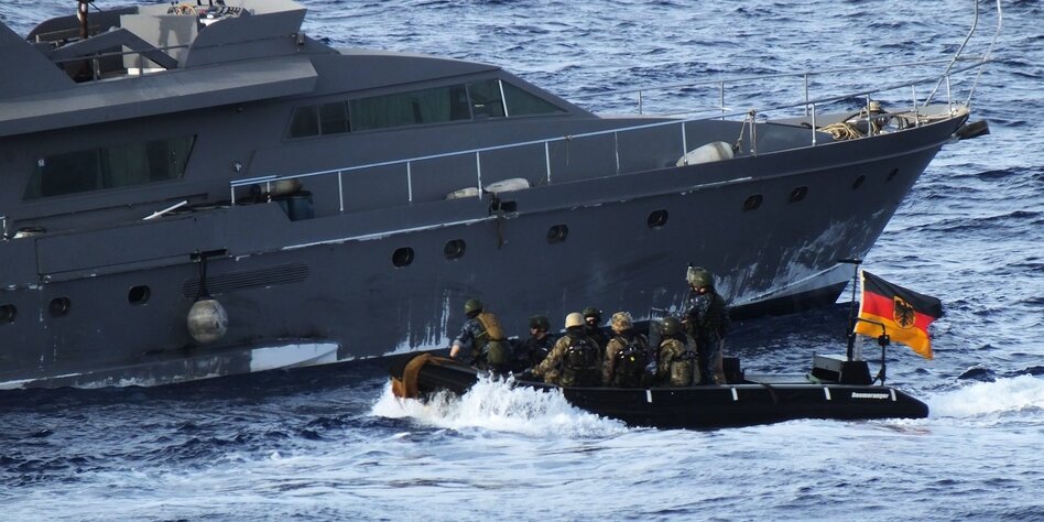 Deutschland wird sich daran vorbehaltlich eines Bundestagsbeschlusses mit bis zu 300 Soldaten beteiligen, hat das Bundeskabinett am Mittwoch beschlossen. Als Einsatzgebiet definiert das Regierungsschreiben an die Bundestagsfraktionen, das der taz vorliegt, „die Hohe See außerhalb der Küstenmeere Libyens und Tunesiens“. Zunächst soll die Bundeswehr einen Seefernaufklärer sowie Personal für das „Irini“-Hauptquartier in Rom bereitstellen, ab August 2020 auch eine Einheit auf See.