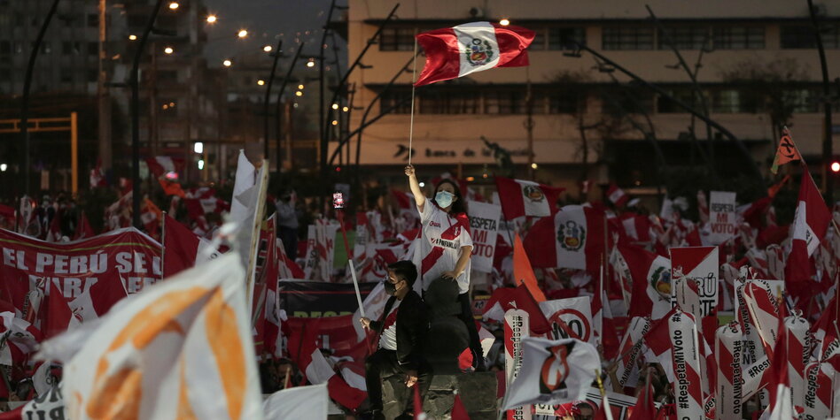 Keiko Fujimori will ihre knappe Wahlniederlage nicht eingestehen. Wie der Wahlsieger Castillo mobilisiert sie ihre Anhänger in Lima.