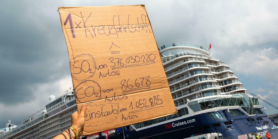 In Kiel protestieren Aktivist*innen schon länger gegen Kreuzfahrtschiffe. Ihr Ziel ist es, den Kreuzfahrttourismus abzuschaffen.
