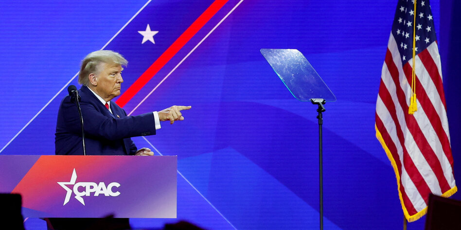 Eine interne, nicht-repräsentative Umfrage während der Veranstaltung hatte gezeigt, dass 62 Prozent aller CPAC-Teilnehmer Trump als den Topfavoriten für die republikanische Nominierung im kommenden Jahr sehen. Der Gouverneur des US-Bundesstaates Florida [4][Ron DeSantis] landete mit 20 Prozent weit abgeschlagen auf dem zweiten Platz.