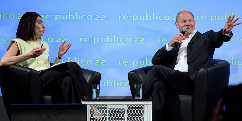 Olaf Scholz trat 2022 auf der „Republica“ auf. Eine taz-Recherche zeigt: Die vermeintlich unabhängige Interviewerin hatte er selbst engagiert.