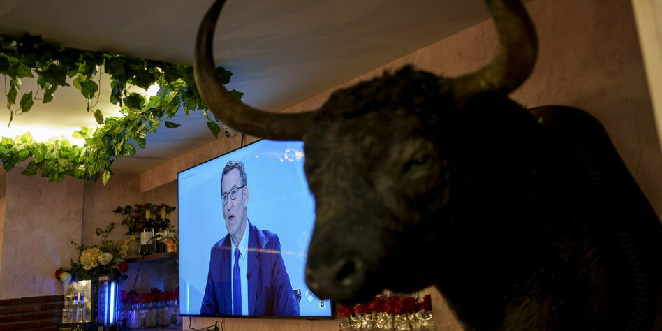 Nein, die Rede ist nicht von Andrzej Dudas Polen, Victor Orbáns Ungarn oder [1][Giorgia Melonis Italien] – die Rede ist davon, was ab Sonntag Spanien nach den Parlamentswahlen blühen könnte. Denn der Kandidat der rechtskonservativen Partido Popular (PP), Alberto Núñez Feijóo, will, sollten denn die Stimmen reichen, mit der rechtsextremen VOX eine Koalition eingehen. Dass er keine Bedenken hat, solch rechtsextreme Programmpunkte umzusetzen, [2][das beweist Feijóos PP auf kommunaler und regionaler Ebene].