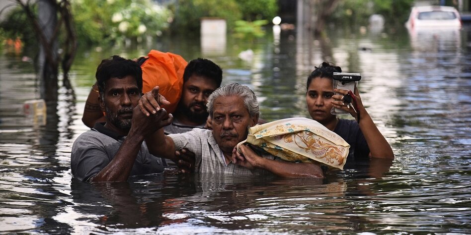 Meine Freunde in der Millionenstadt Chennai im Süden setzten nach dem Zyklon „Michaung“ auf Facebook ein Häkchen hinter „in Sicherheit“. In den Nachrichten hieß es, dass Menschen aus ihren Häusern gerettet wurden, nachdem sie von den Wassermassen eingeschlossen worden waren. Die Bilder von Einkaufsstraßen mit Luxusgeschäften, durch die nach Regengüssen Schlauchboote fahren, sind in vielen indischen Städten alltäglich geworden.